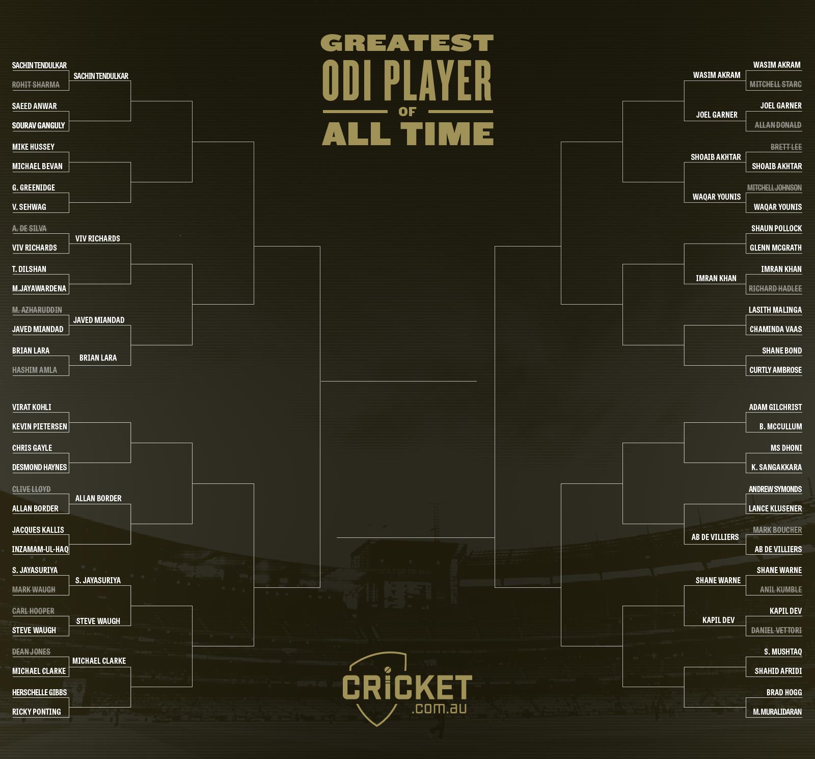 Pakistani greats, including Imran Khan, Saeed Anwar, Shoaib Akhtar, Wasim Akram and Waqar Younis have cleared the initial round of the tournament, beating all-time legendary players such as Sourav Ganguly, Mohammad Azharuddin, Brett Lee and Richard Hadlee.